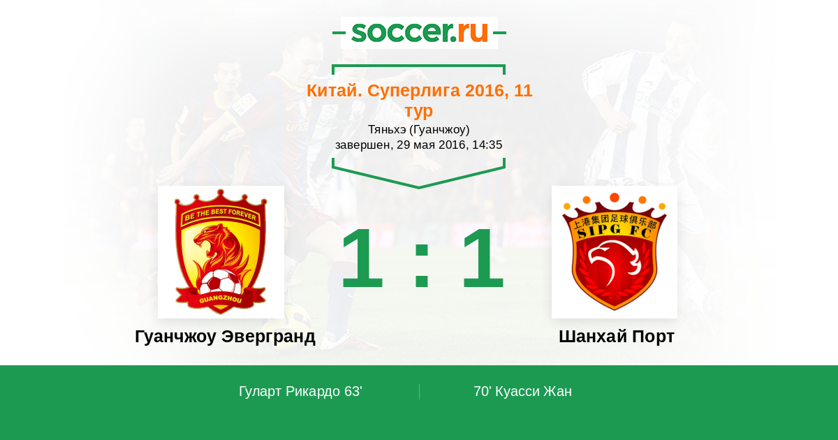 Протокол матча Гуанчжоу Эвергранд против Шанхай Порт
