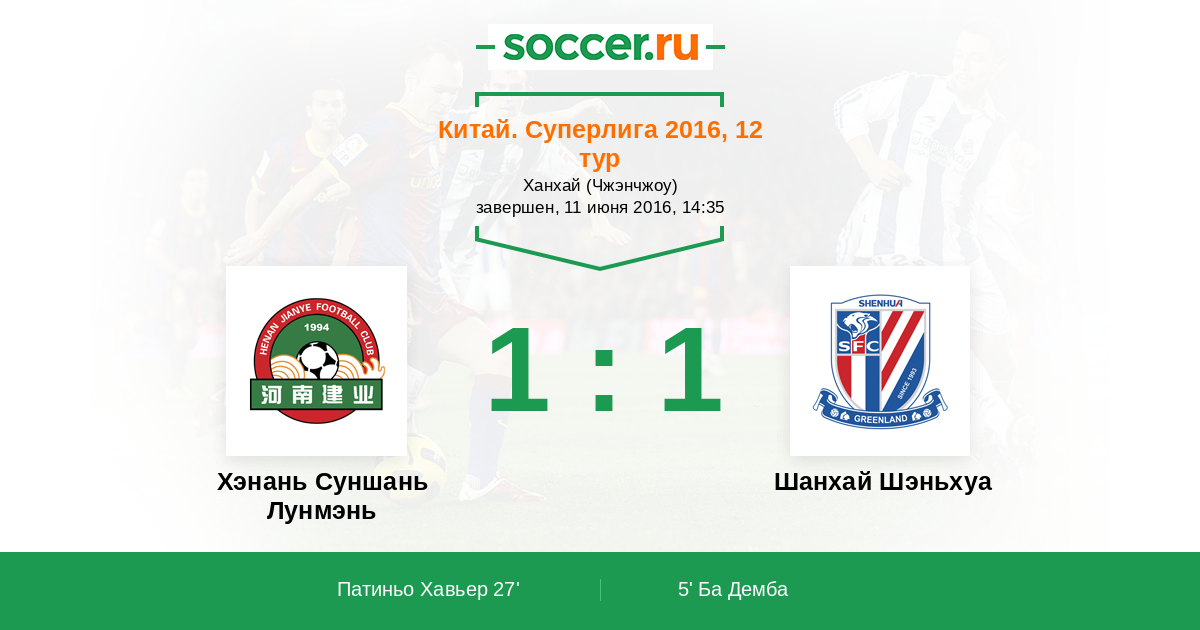 Протокол матча Хэнань Суншань Лунмэнь против Шанхай Шэньхуа