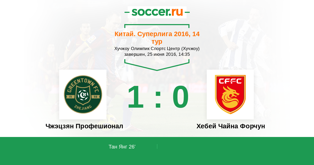 26' (1:0) Тан Янг (26) (Габионетта (7))