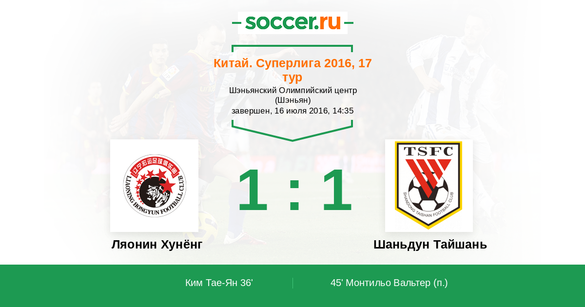 Протокол матча Ляонин Хунёнг против Шаньдун Тайшань
