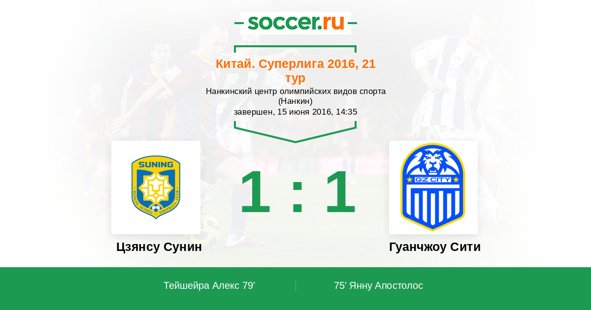 Протокол матча Цзянсу Сунин против Гуанчжоу Сити