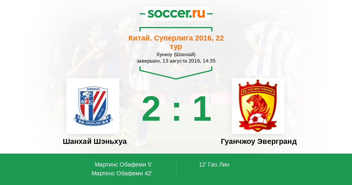 Протокол матча Шанхай Шэньхуа против Гуанчжоу Эвергранд