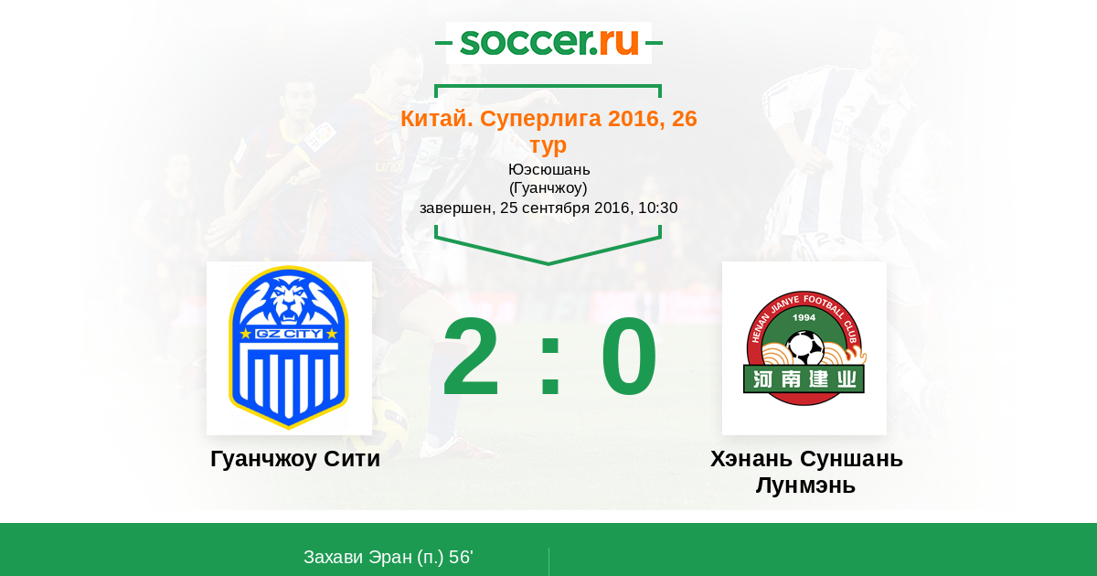 Протокол матча Гуанчжоу Сити против Хэнань Суншань Лунмэнь