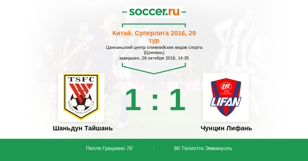 Протокол матча Шаньдун Тайшань против Чунцин Лифань