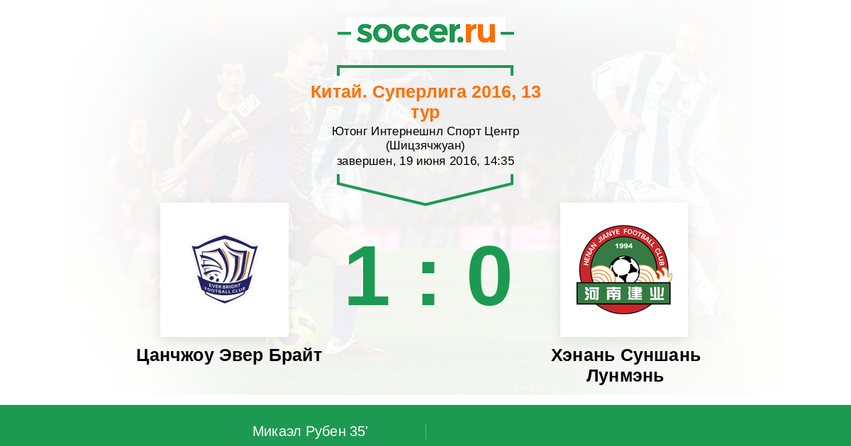Протокол матча Цанчжоу Эвер Брайт против Хэнань Суншань Лунмэнь