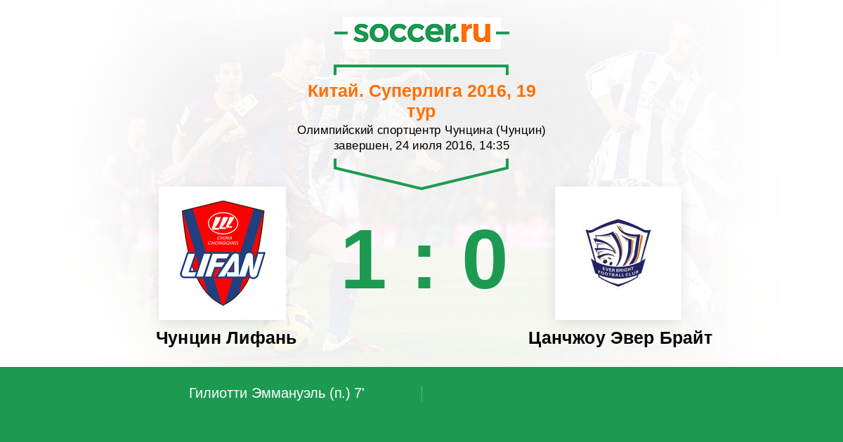 Протокол матча Чунцин Лифань против Цанчжоу Эвер Брайт