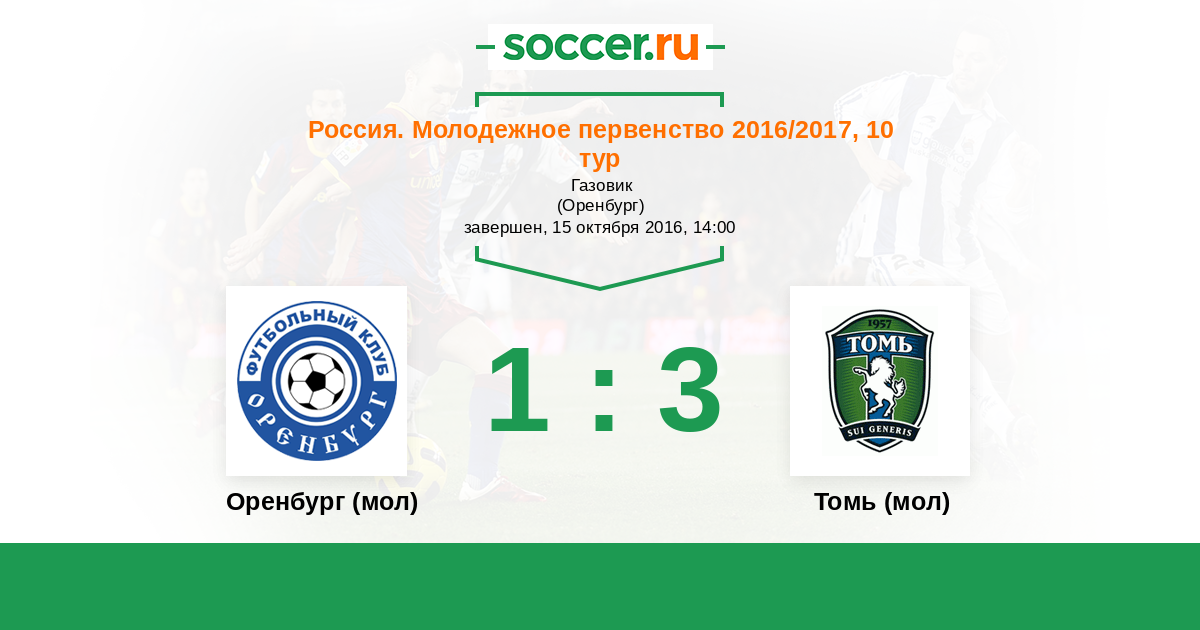 История матча Оренбург (мол) против Томь (мол)