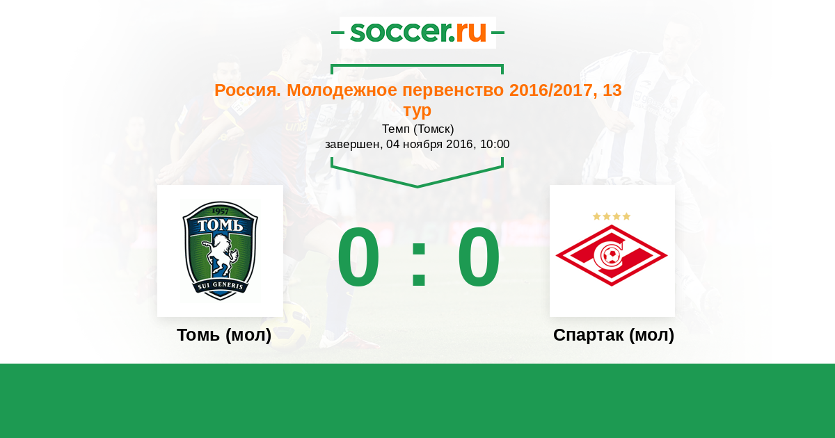 История матча Томь (мол) против Спартак (мол)