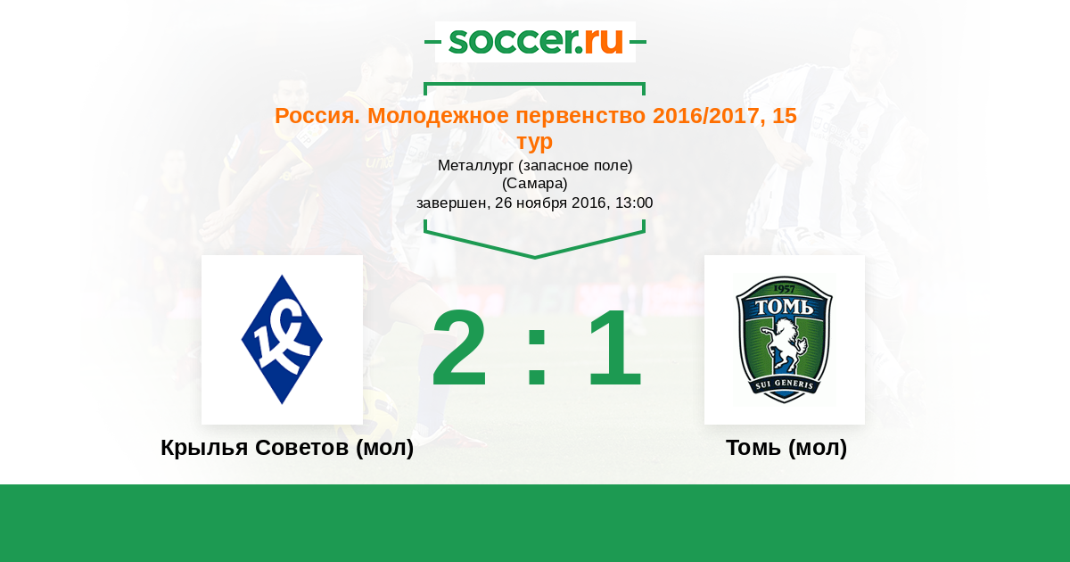 История матча Крылья Советов (мол) против Томь (мол)