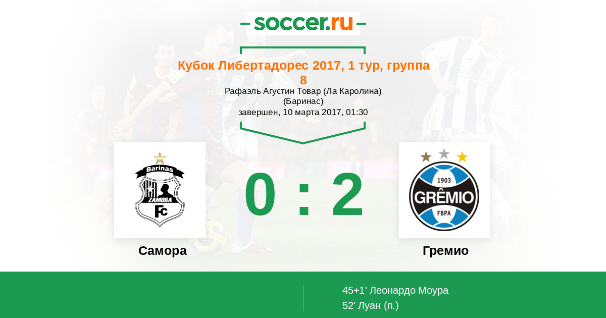 Протокол матча Замора против Гремио