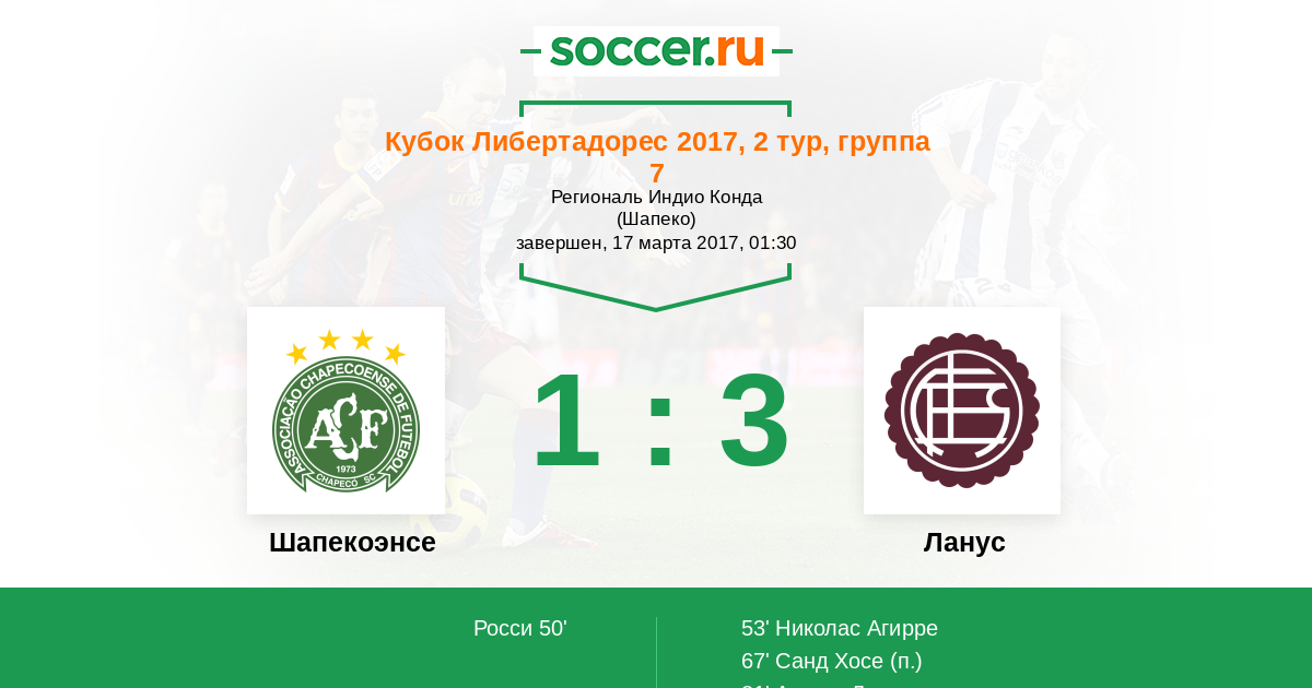 53' (1:1) Николас Агирре (19) (Сильва Алехандро (16))