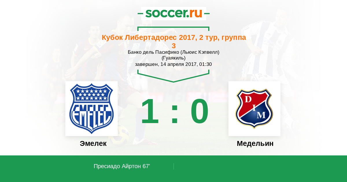 Гол67' (1:0) Пресиадо Айртон (18) (Маркос Мондаини (8))