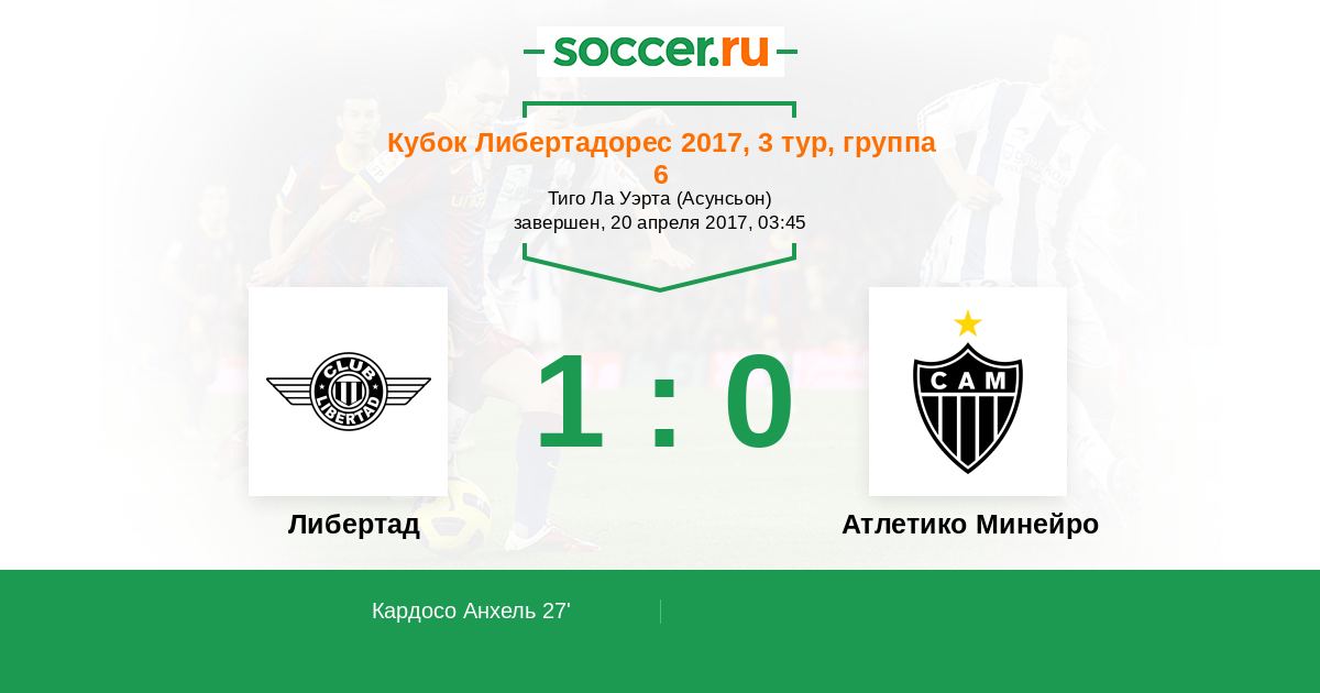 Протокол матча Либертад против Атлетико Минейро
