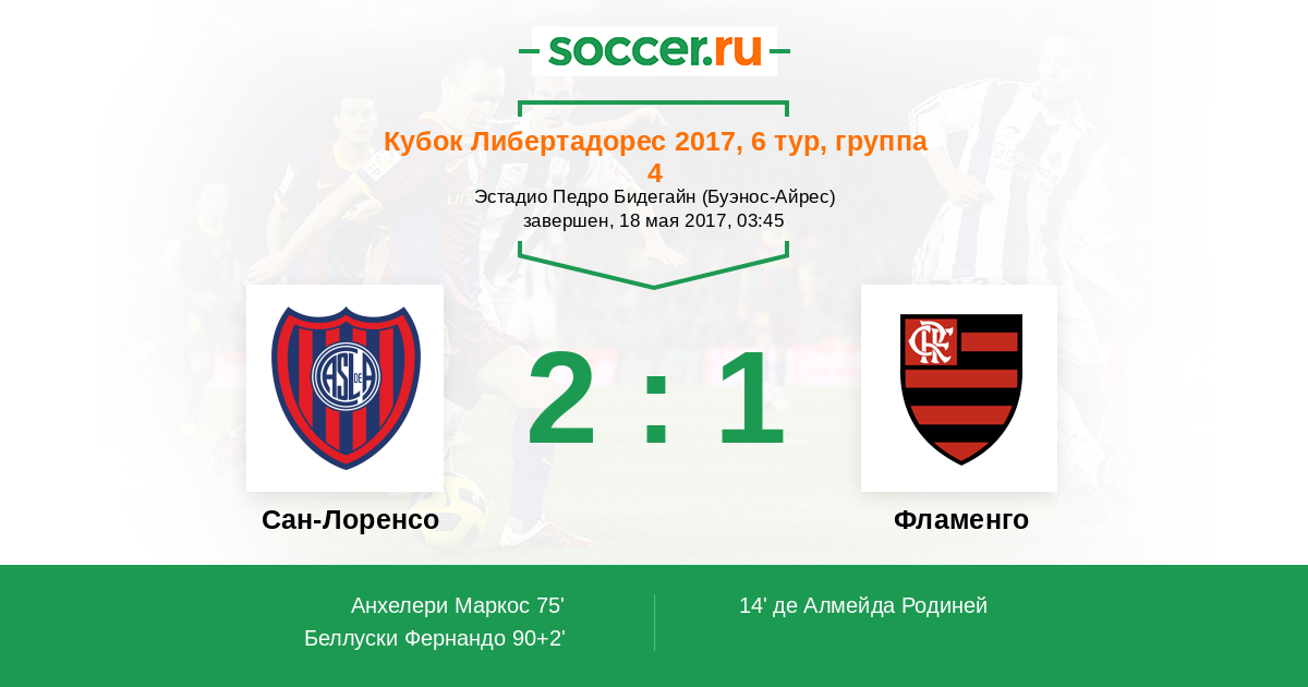Протокол матча Сан-Лоренсо против Фламенго