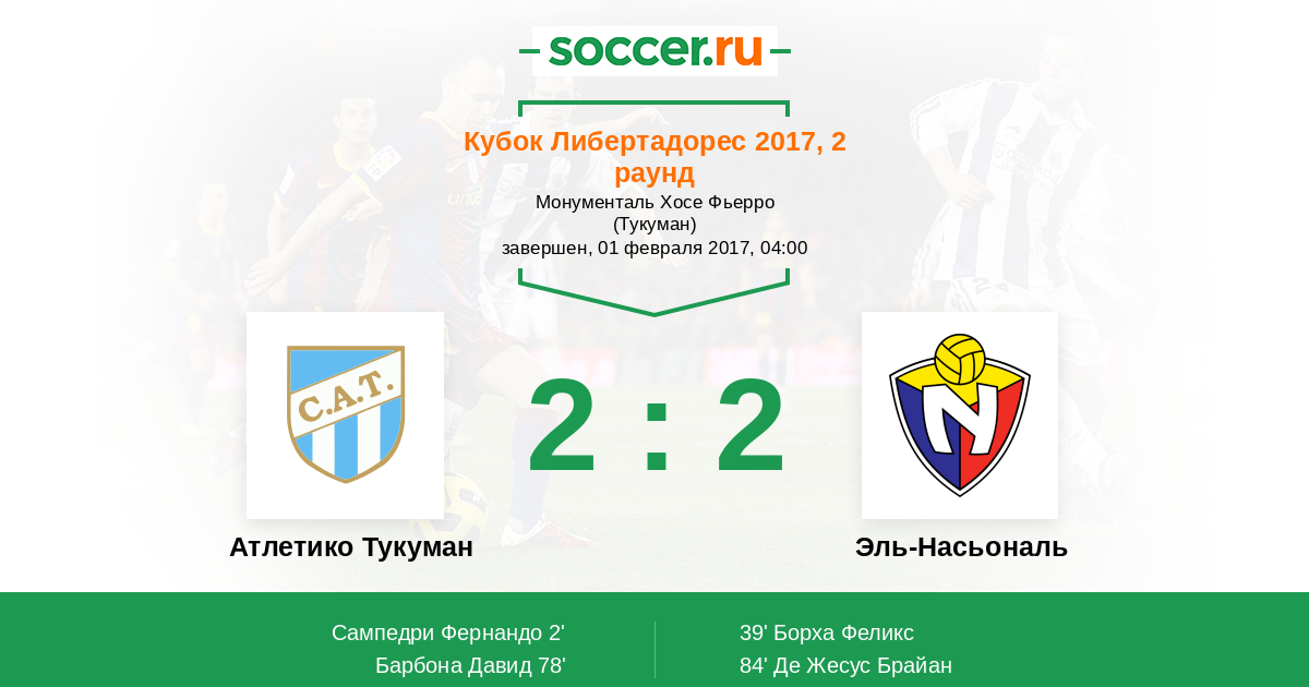 Протокол матча Атлетико Тукуман против Эль-Насьональ