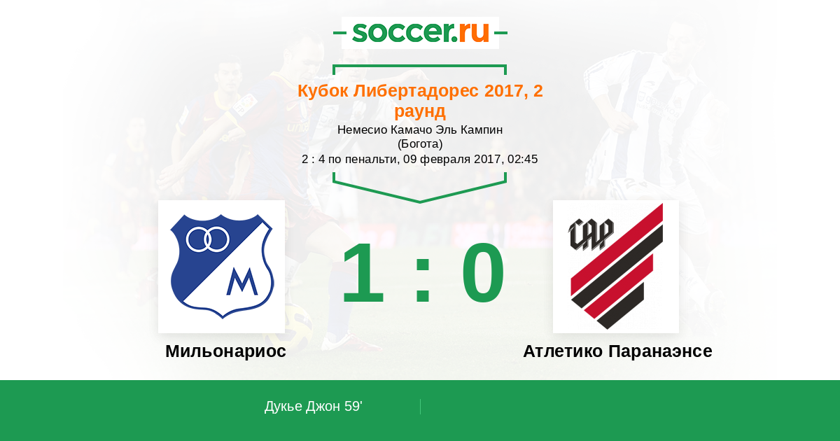 Протокол матча Мильонариос против Атлетико Паранаэнсе