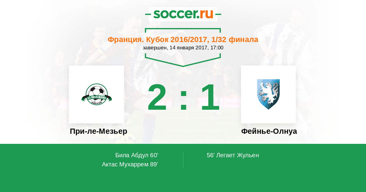 Протокол матча При-ле-Мезьер против Фейнье-Олнуа