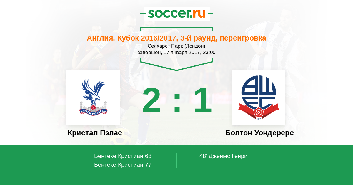 Протокол матча Кристал Пэлас против Болтон Уондерерс