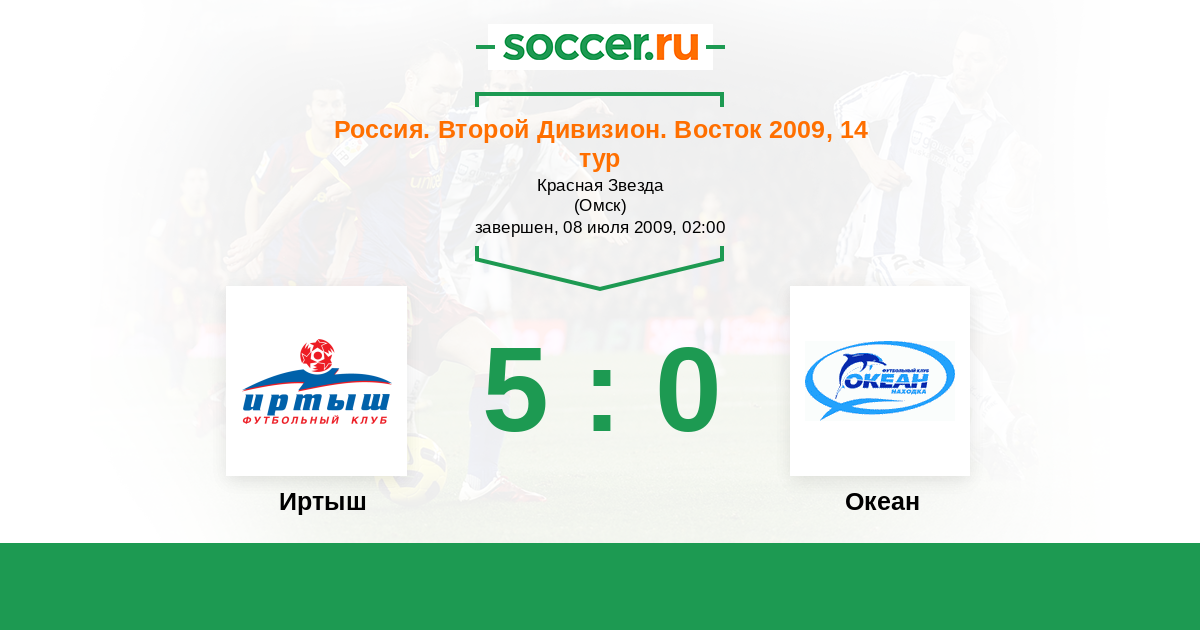 Россия. 2-й дивизион. Восток 26.09.2009 Океан Логотип футбольный клуб Океан (Находка) 0:0 Логотип футбольный клуб Иртыш (Омск) Иртыш