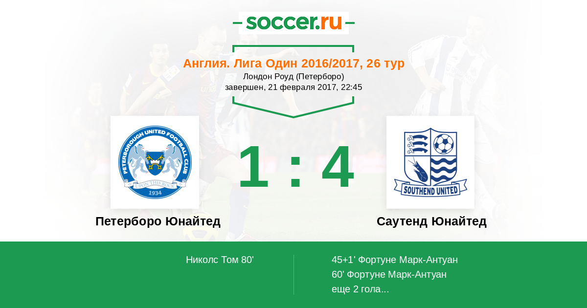 Протокол матча Петерборо Юнайтед против Саутенд Юнайтед