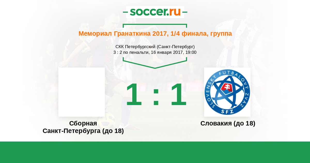 Матч Сборная Санкт-Петербурга (до 18) против Словакия (до 18)