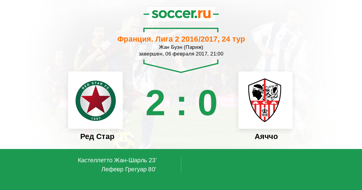 Протокол матча Ред Стар против Аяччо
