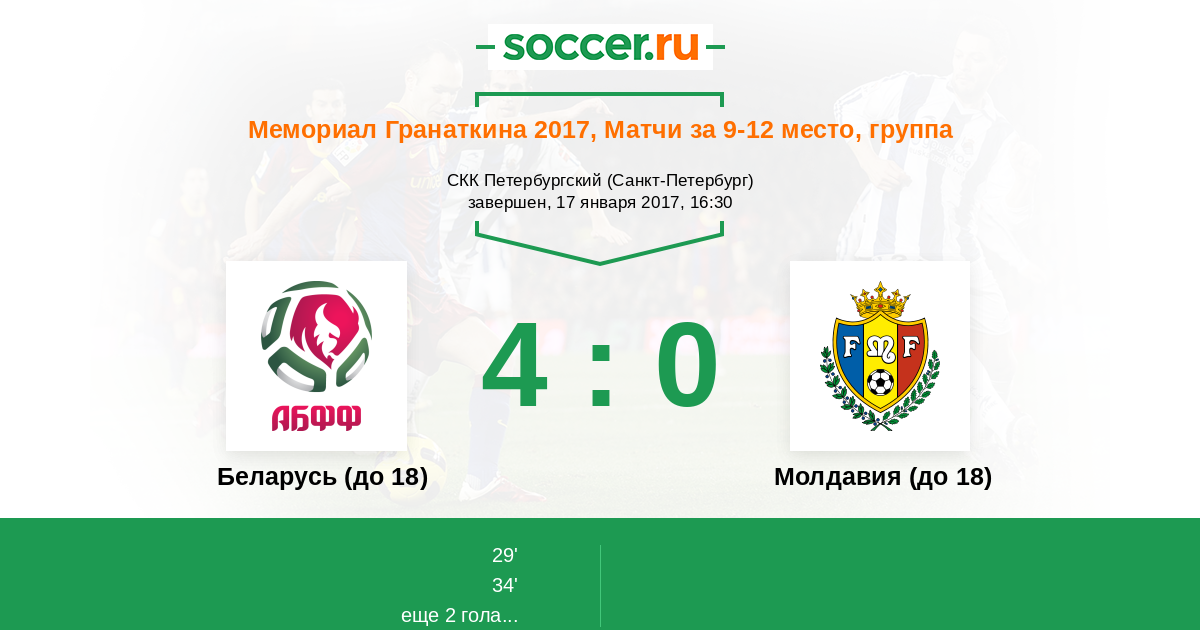 Протокол матча Беларусь (до 18) против Молдавия (до 18)