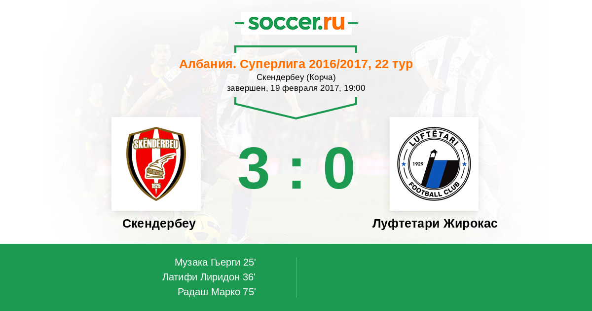 Протокол матча Скендербеу против Луфтетари Жирокас