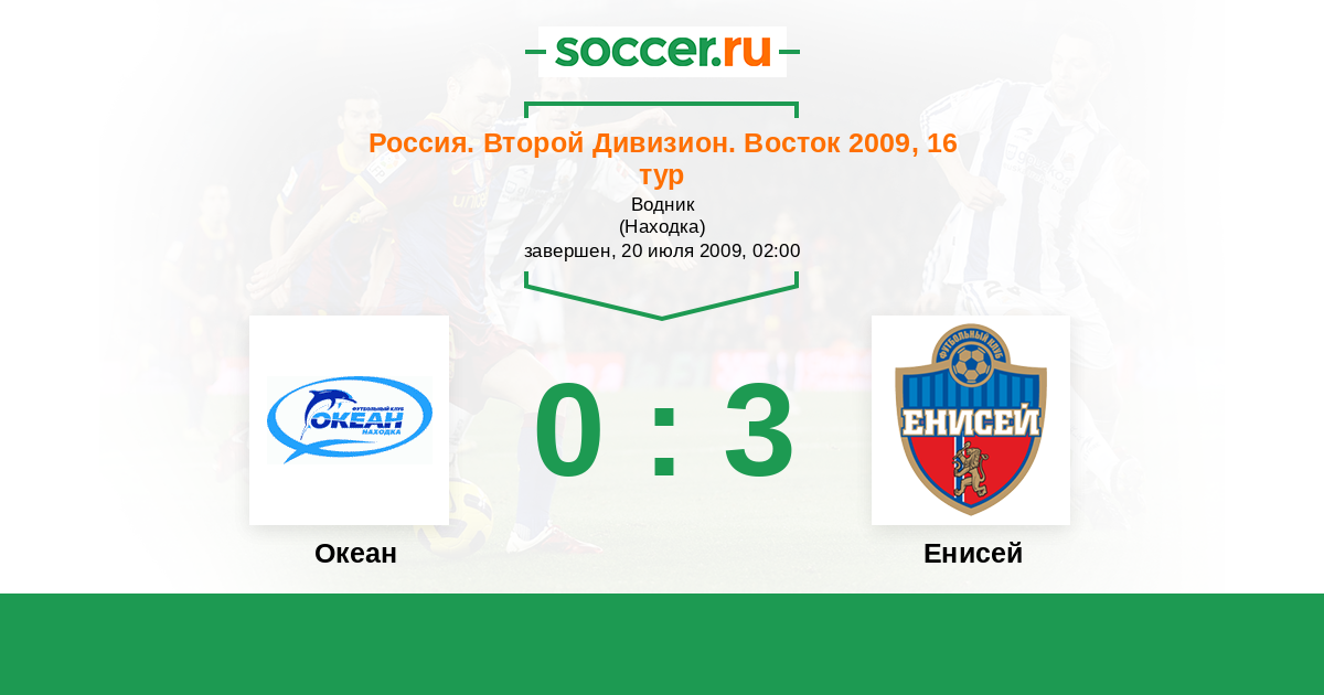 Россия. 2-й дивизион. Восток 02.06.2009 Енисей Логотип футбольный клуб Енисей (Красноярск) 5:1 Логотип футбольный клуб Океан (Находка) Океан