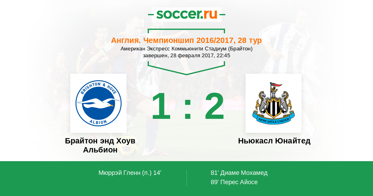 Протокол матча Брайтон энд Хоув Альбион против Ньюкасл Юнайтед