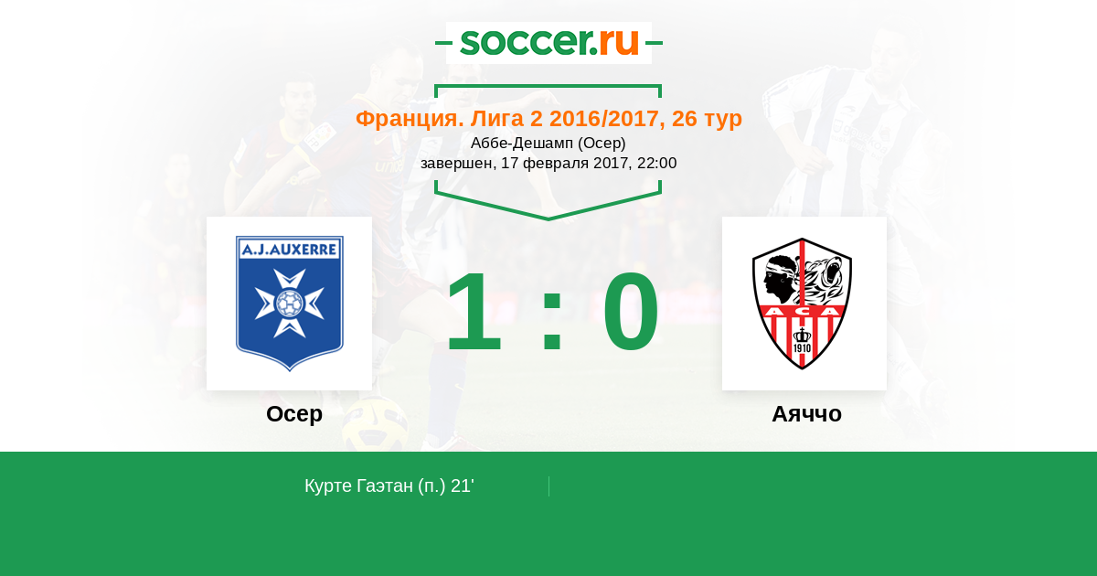 Протокол матча Осер против Аяччо