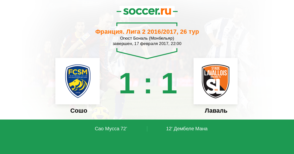 Протокол матча Сошо против Лаваль