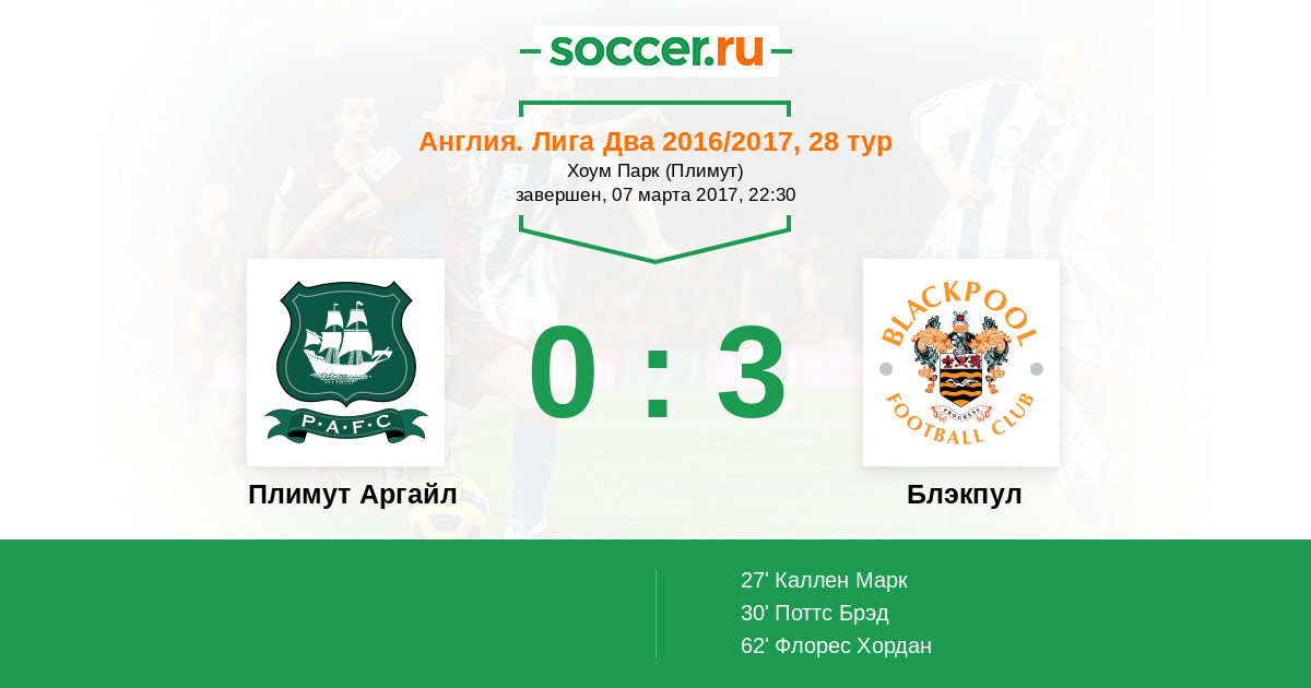 Протокол матча Плимут Аргайл против Блэкпул
