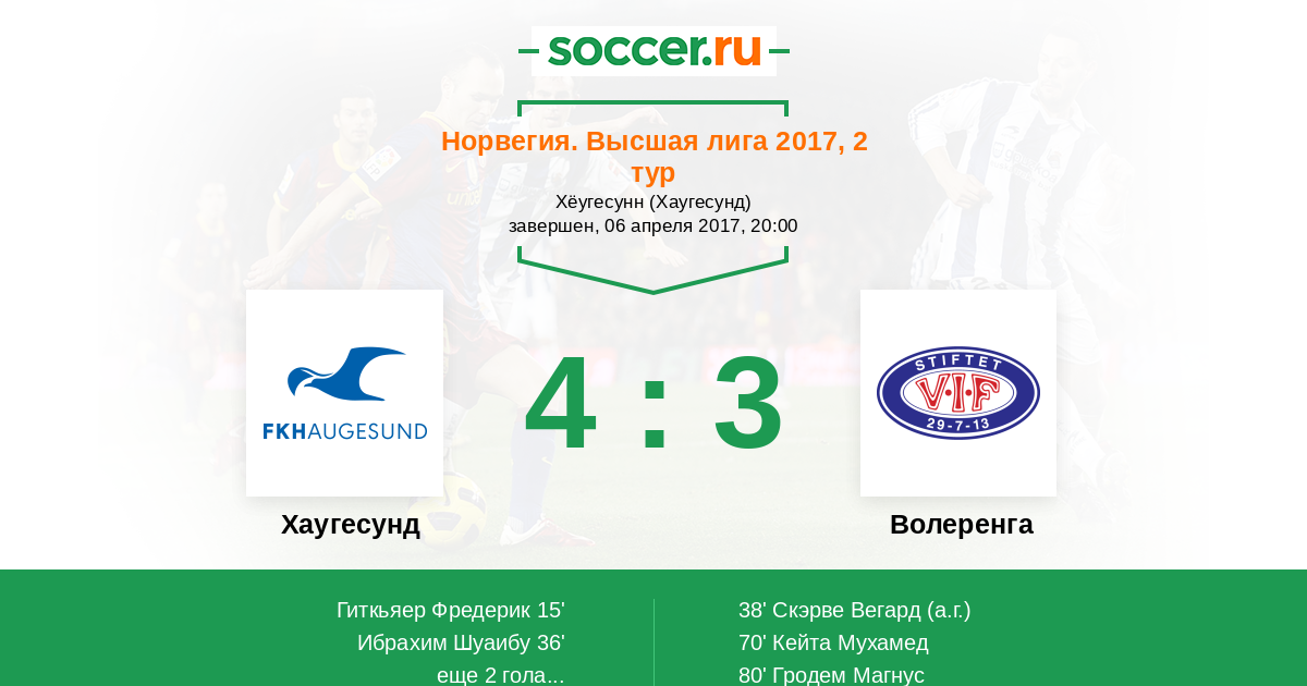 Протокол матча Хаугесунд против Волеренга