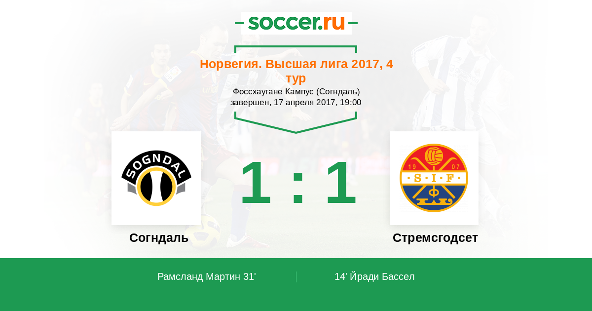 Протокол матча Согндаль против Стремсгодсет