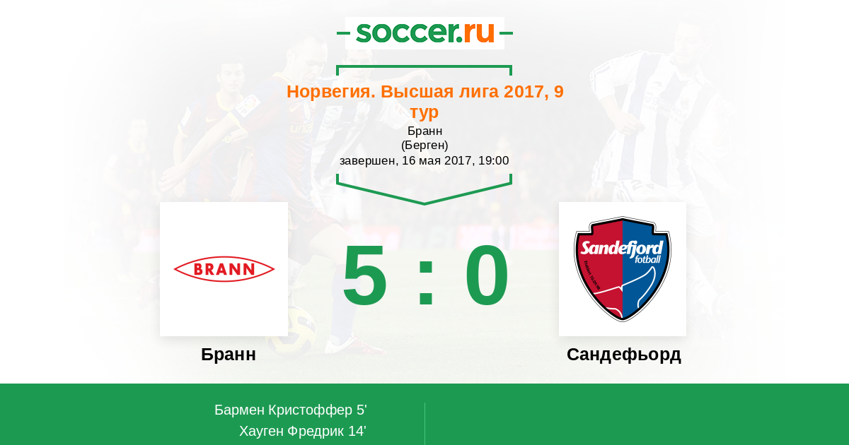 Протокол матча Бранн против Сандефьорд