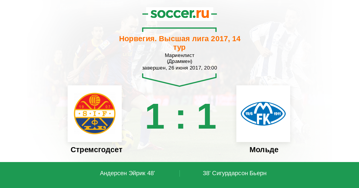 Протокол матча Стремсгодсет против Мольде