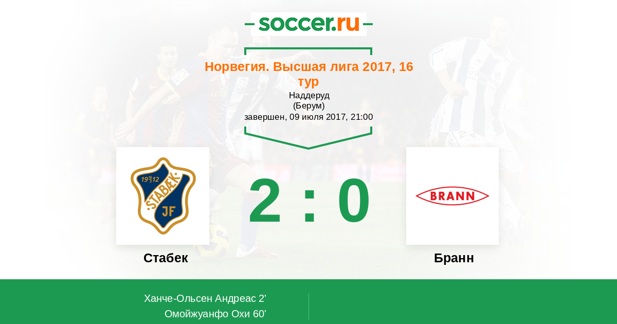 Протокол матча Стабек против Бранн