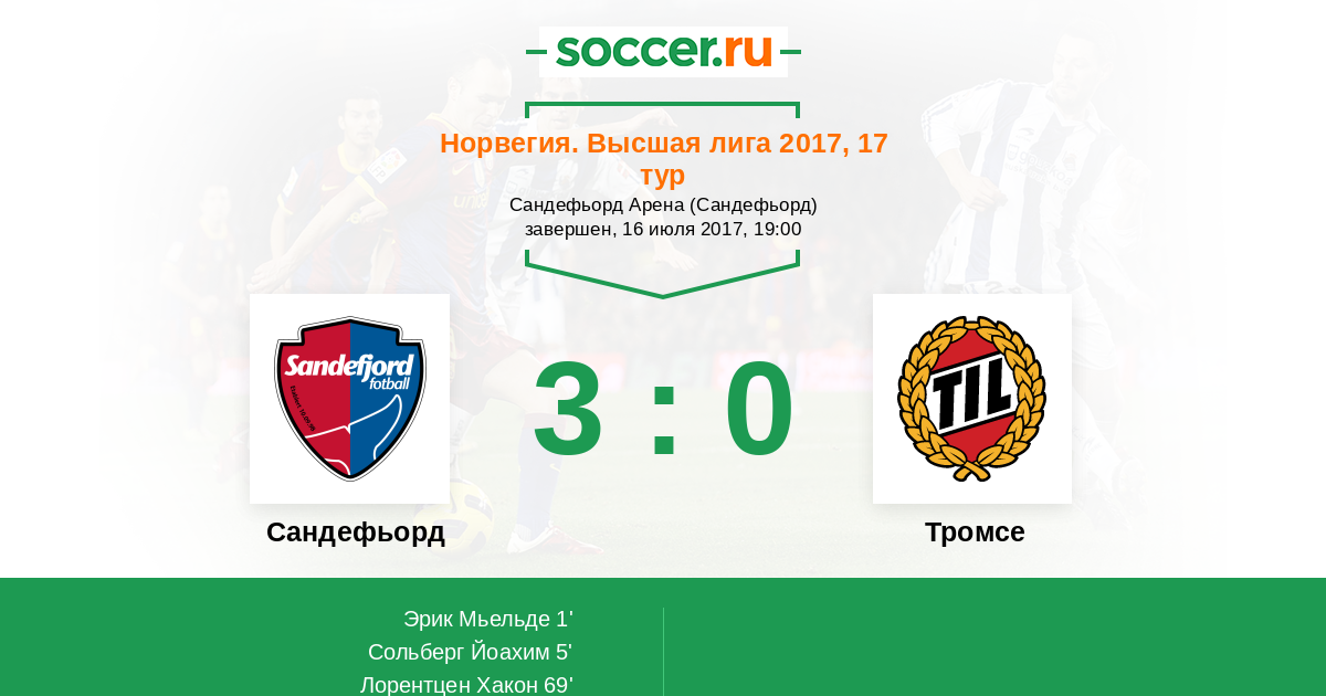 Протокол матча Сандефьорд против Тромсе