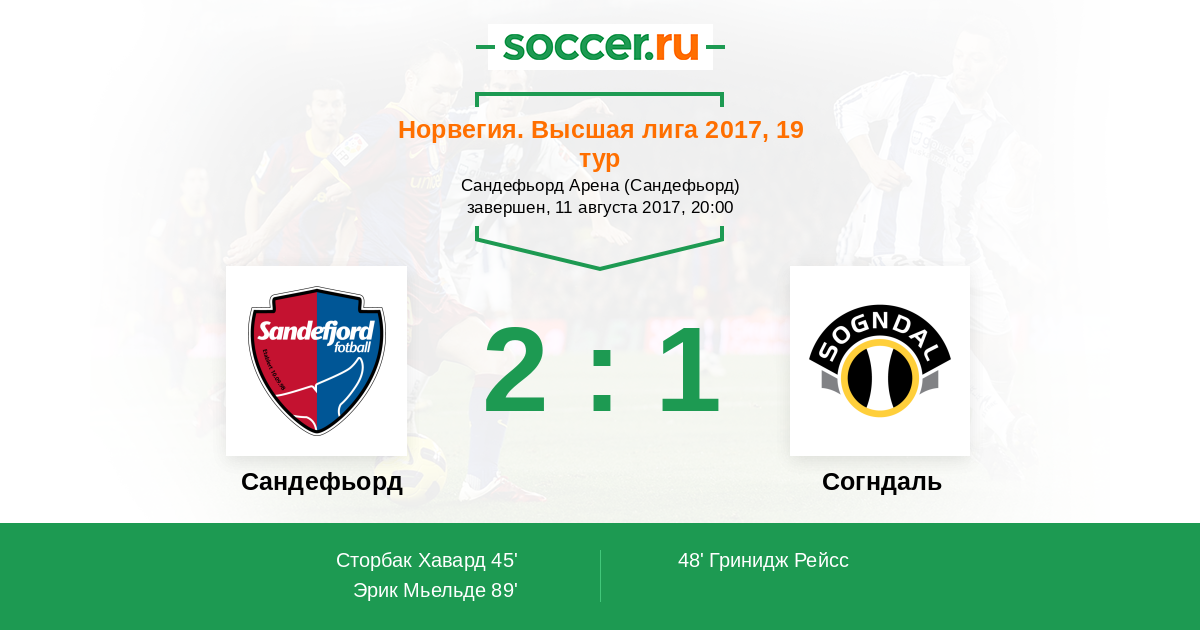 45' (1:0) Сторбак Хавард (9) (Сольберг Йоахим (17))