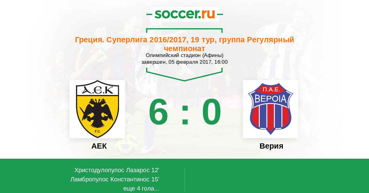 Протокол матча АЕК против Верия