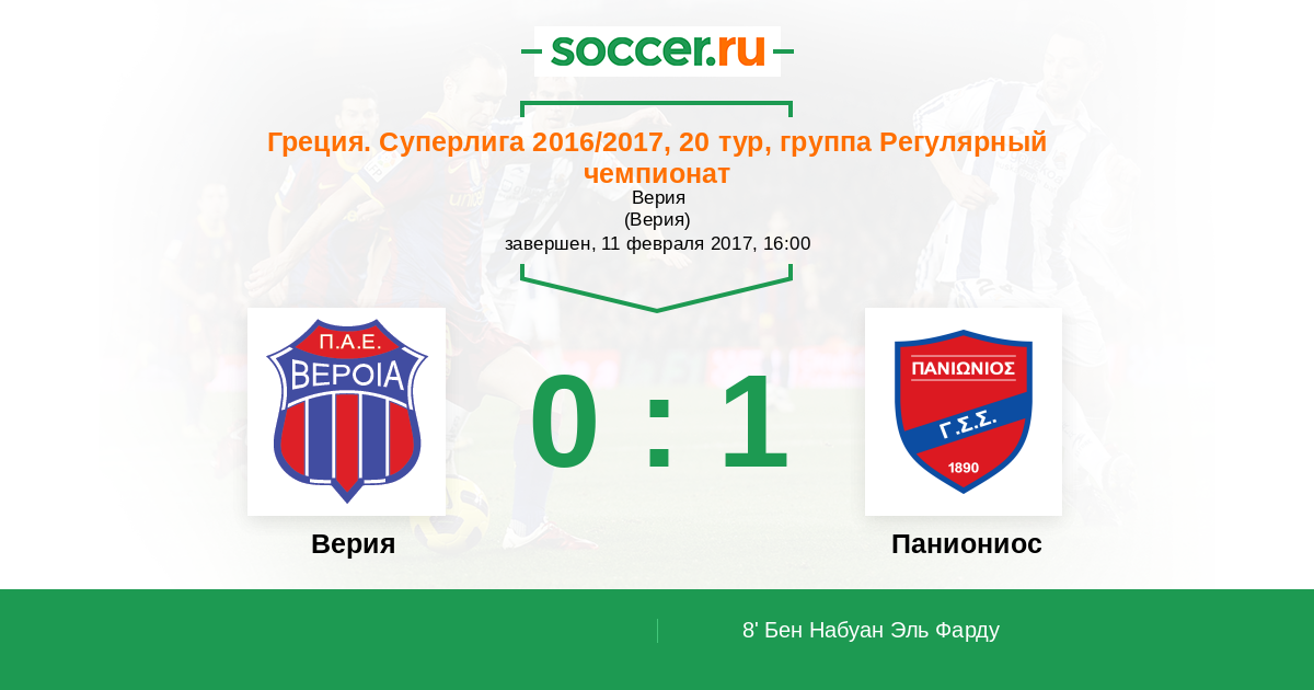 Протокол матча Верия против Паниониос