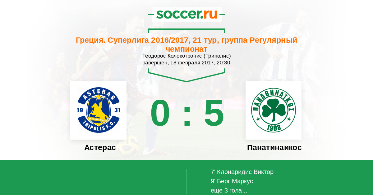 Протокол матча Астерас против Панатинаикос