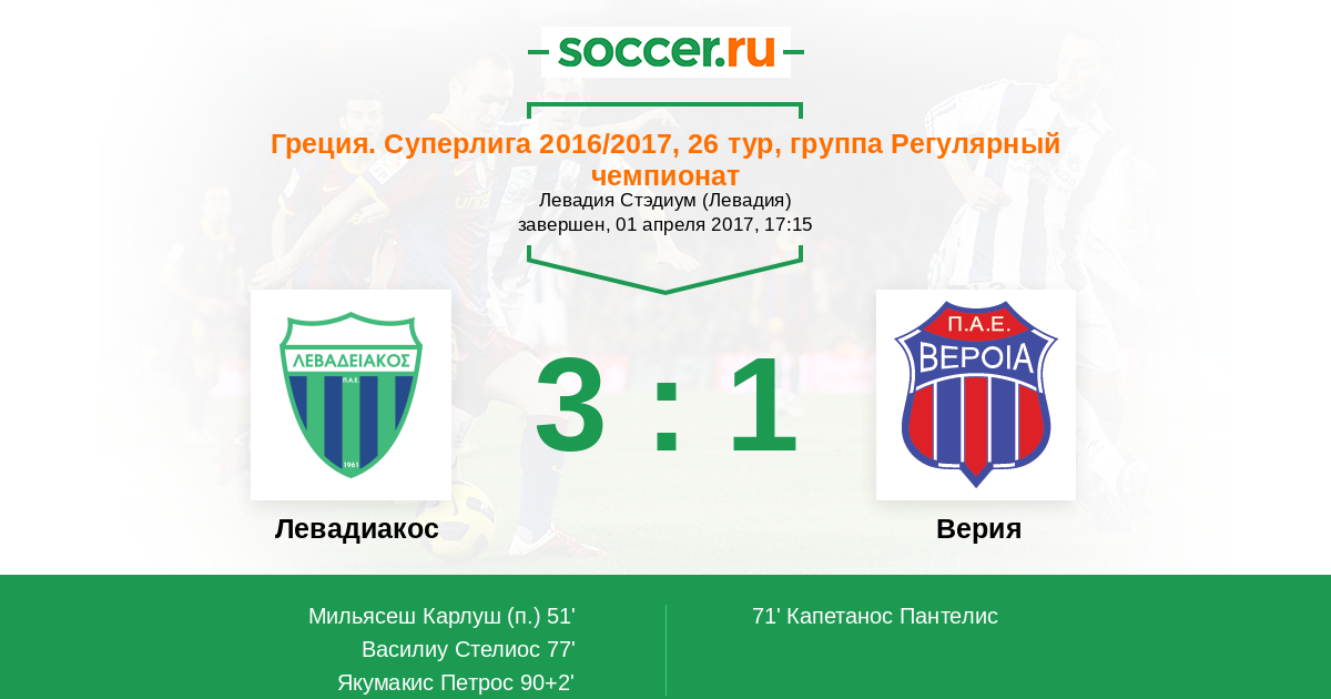 77' (2:1) Василиу Стелиос (11) (Карабуе Лоссеми (88))