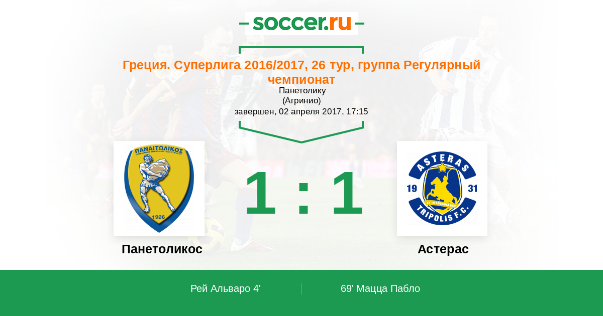 Протокол матча Панетоликос против Астерас