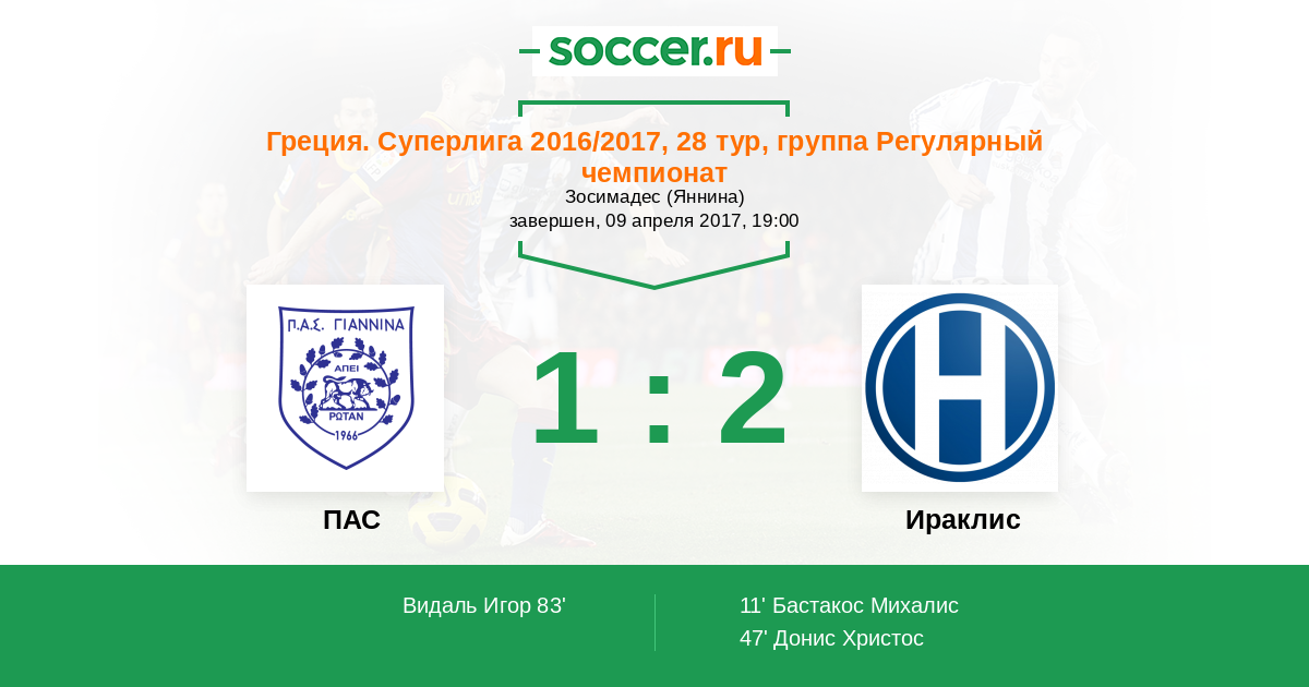 Протокол матча ПАС против Ираклис