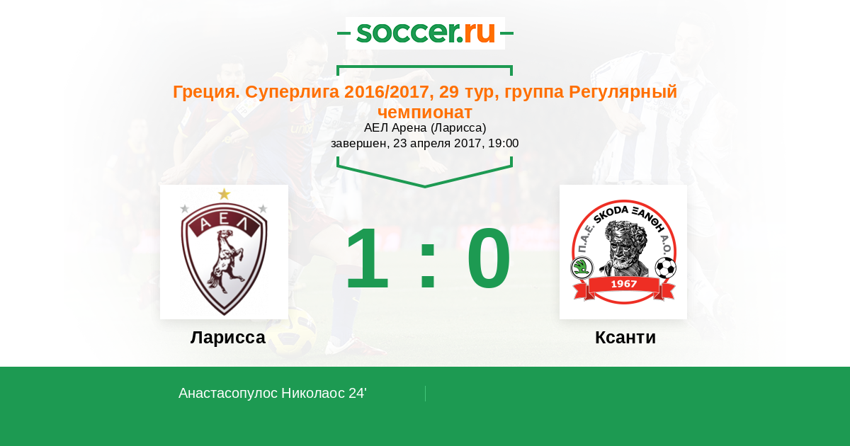 24' (1:0) Анастасопулос Николаос (4) (Химо Наварро (30))