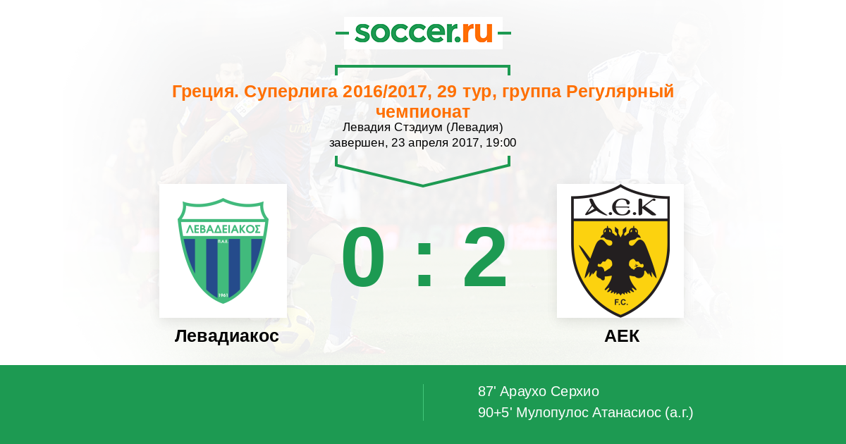 Протокол матча Левадиакос против АЕК