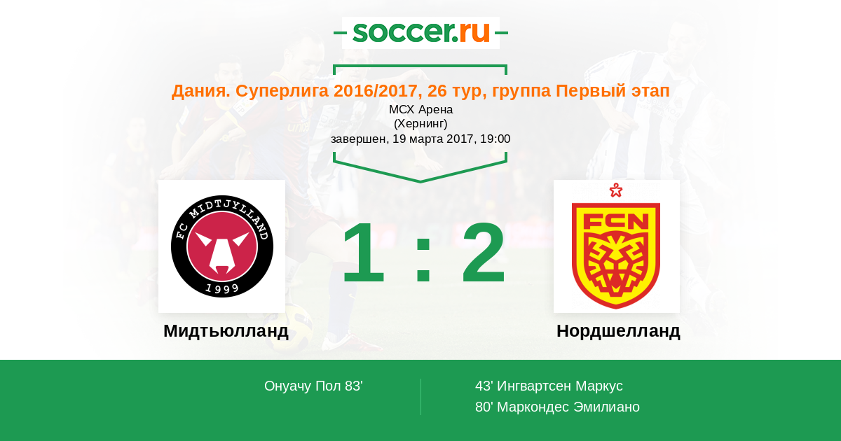 Протокол матча Мидтьюлланд против Нордшелланд