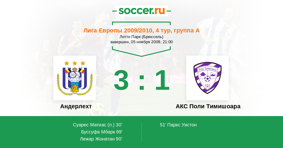 Протокол матча Андерлехт против АКС Поли Тимишоара